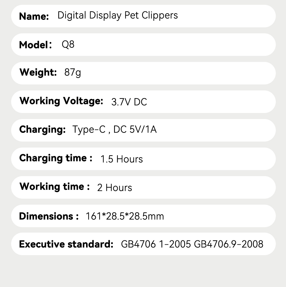 Product Name:Rojeco Q8 Electric Dog Hair Trimmer LED